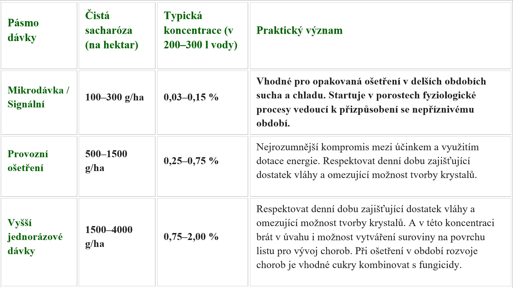 Sacharóza není klasické "uhlíkaté listové hnojivo", ale funguje spíše jako biostimulační a signální zásah.